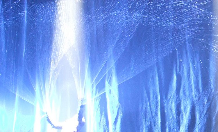 Hombre Vertiente tiene su génesis en la Exposición Zaragoza 2008, desarrollandose inicialmente como un espectáculo referente al agua, siendo el principla reto el lograr un ritmo que conjugue los diversos aspectos técnicos y escénicos para desarrollar la historia, teniendo a partir de entonces una evolución constante, abierta a la interacción con el público, por lo que cada presentación es distinta.