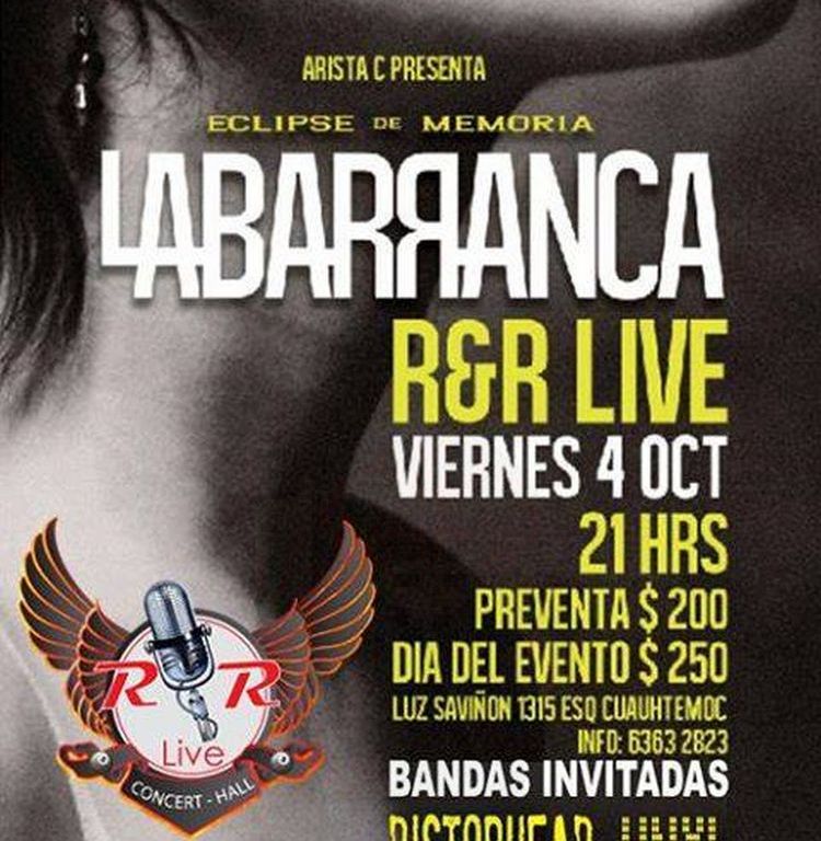 La Barranca: presentará Eclipse de Memoria en R y R Live el próximo 4 de Octubre en lo que se antoja como una velada potente con mucho Rock y un repaso por la trayectoria de la banda.