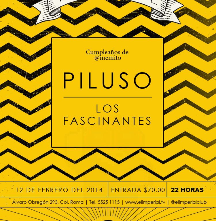 Este Miércoles 12 de Febrero todos queremos celebrar y con el pretexto de festejar a @Memito vamos todos a El Imperial donde la fiesta estará cargada de buena música con la resencia en el escenario de Piluso y Los Fascinantes.