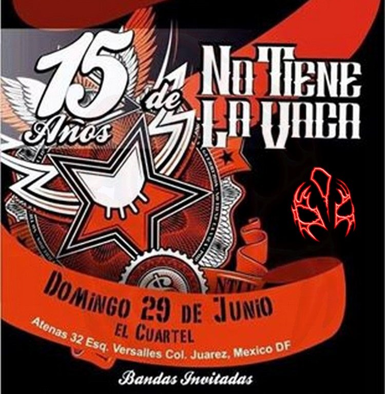 No Tiene La Vaca celebra XV años, de existencia, resistencia y andar pateando por el camino, por lo que en el Cuartel se llevará a cabo la fiesta en la que tendran la ocasión de gritar, bailar y moverse al ritmo del vals en el cual los acompañaran Kurado, Los Garrufas, Vimana y Pincel Ská.