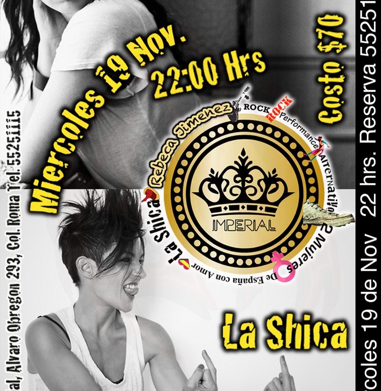 España es un país del cual tenemos una gran tradición de cantautoras que más allá de su belleza o talento, se caracterizan por mantener un discurso inquisitivo, por lo que este Miércoles 19 de Noviembre, la fiesta en El Imperial se engalanará con la presencia de Rebeca Jimenez y La Shica.