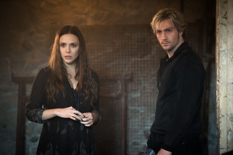 L to R: Scarlet Witch/Wanda Maximoff (Elizabeth Olsen) and Quicksilver/Pietro Maximoff (Aaron Taylor-Johnson)