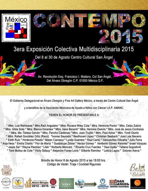 Con la finalidad de difundir el arte y acercarlo a todos los sectores de la sociedad, como sucede en muchos países alrededor del mundo, este 8 de agosto se inaugurara la tercera edición de CONTEMPO 2015 en México, en el Centro Cultural San Ángel, que permanecerá abierta al público hasta el 30 de agosto y en la que exponen 47 artistas, entre los que destacan: Luis Nishizawa, Raúl Anguiano, Pancho Cárdenas, Celso Zubiré, Herminia Pavón, Roxana Wiley, Irene Becerril, Gilda Solís, Ma. Teresa Galván, Hermine Demiró, Heriberto González, Blanca Dorantes y Raúl Cantú.