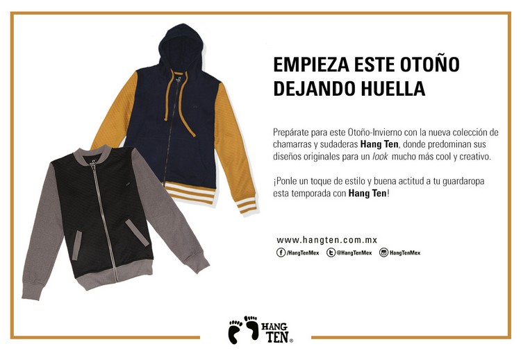 Hang Ten no sólo es ropa de playa o para los días soleados, es una marca que sabe de los gustos y tendencias de los más jóvenes, tan cambiantes como el clima puede llegar a serlo, por lo que para cada temporada te presenta una colección de ropa y accesorios que más allá de ser algo pasajero reflejan tu estilo de manera casual.