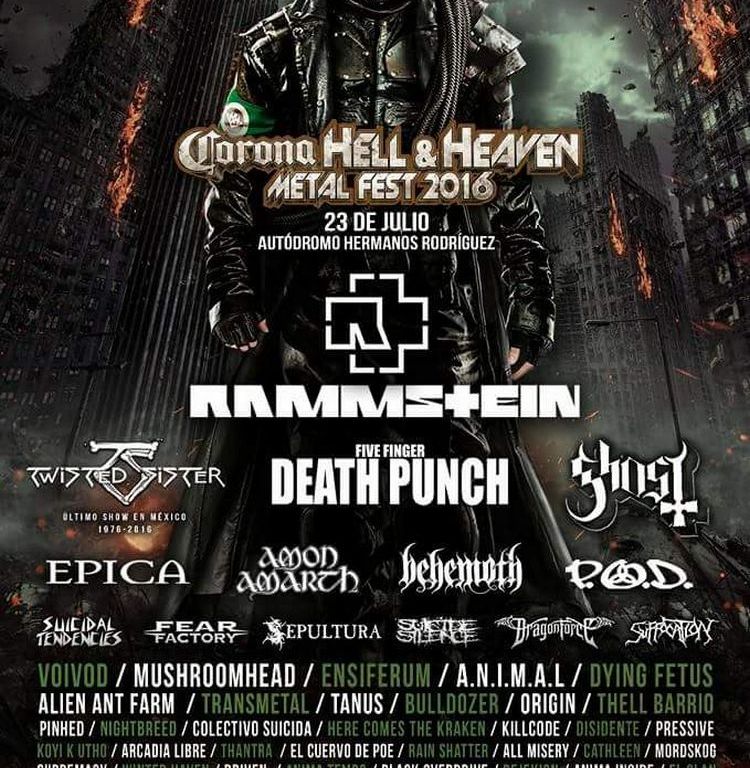 Se sabe que no hay quinto malo, por ello, el regreso a México del festival metalero más grande de América Latina no será la excepción. La fecha está confirmada: Sábado 23 de Julio de 2016 en La Curva 4 del Autódromo Hermanos Rodríguez y el cartel que aguarda al público mexicano se prevé como la mayor fiesta del género de la historia en nuestro país, augurando una fiesta llena de música. Se trata de un encuentro de generaciones unidas en torno a un género que este año dará muchas sorpresas gracias al magnífico line up previsto para una tarde de energía sonora. Entre otros, además de los alemanes Rammstein, se suman bandas muy reconocidas que lo confirman, sobre todo frente a las reacciones del público que agotaron en unas horas las primeras dos fases previstas en preventa se suman ahora bandas históricas y esperadas por todo mundo.