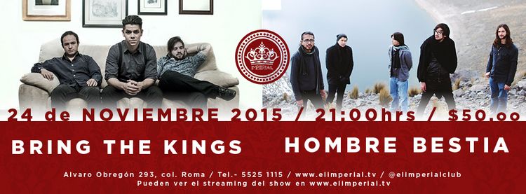 Los Martes son de nuevas propuestas en El Imperial y como en esta semana se darán anuncios importantes en eso que algunos llaman La Escena Nacional, te invitamos a que cargues energías y poder junto con Bring The Kings y Hombre Bestia, dos de las más potentes nuevas propuestas de estos tiempos.