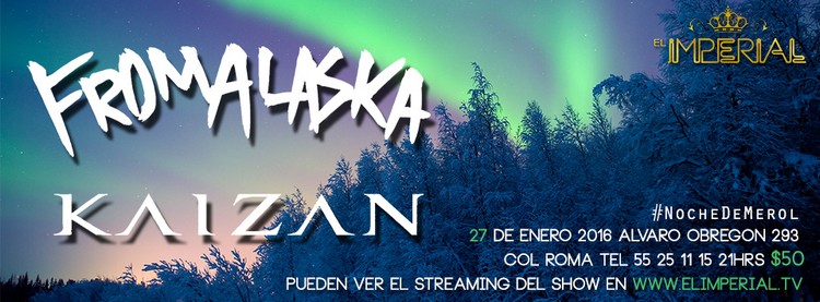 Los Miércoles en El Imperial son de Alternativas pues en este día la programación la integran bandas que han dado ya un paso adelante en esto que llamamos Rock Nacional y que dan clara muestra de determinación para seguir avanzando, más cuando se trata de géneros que salen de lo que se encuentra en boga, teniendo hoy From Alaska y Kaizan el reto de refrendar éxitos en una zona donde las apariencias dicen que no es metal lo que se escucha.