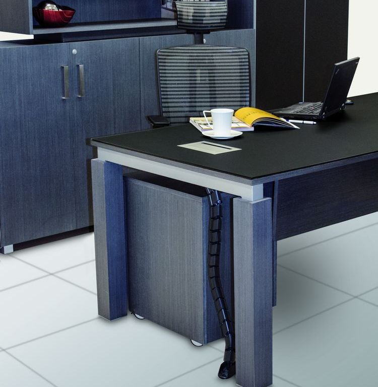 Una característica exclusiva de esta colección es su canaleta en forma de vértebra, que ayuda a tener una vista más limpia, mimetizando el cableado normal de una oficina con el entorno de una forma discreta, práctica y muy estética.