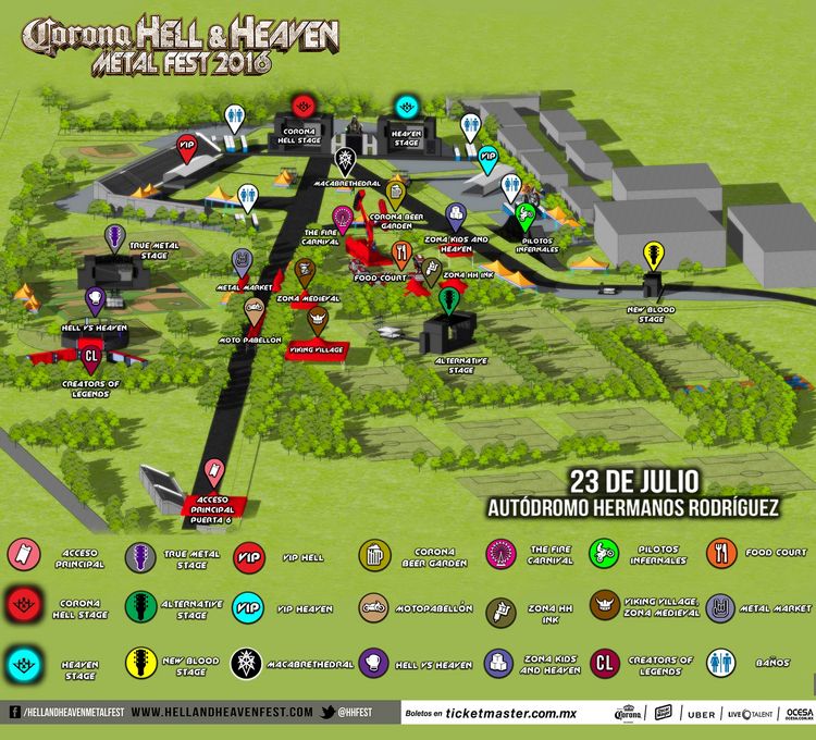 El Corona Hell & Heaven 2016 está ya practicamente en curso, por lo que si no quieres perderte de ninguna de tus bandas favoritas, lo mejor es que planees tu ruta y sepas a qué hora y en qué escenario tocarán, por lo que te ponemos en un formato sencillo el Mapa y Horarios del evento.