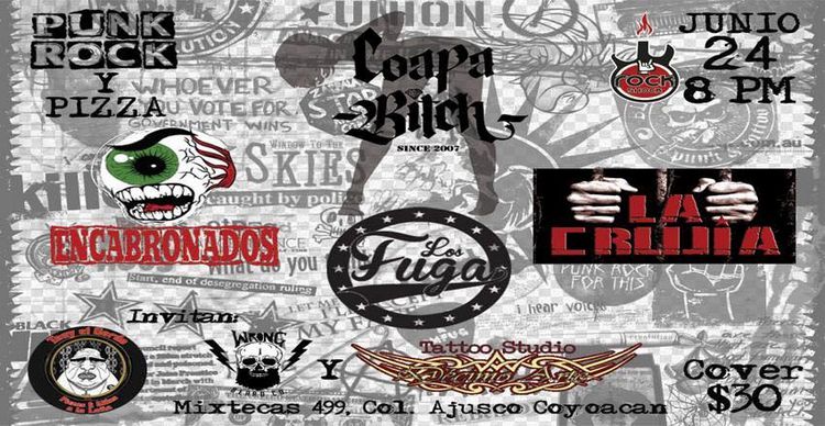 La Fiesta de la Música no para y en Tony Le Gordo está la celebración para aquellos que gustan del Punk Rock y Pizza con Coapa Bitch, La Crujía , Encabronados, Los Fuga y Los Hipnóticos a partir de las 8 de la Noche.
