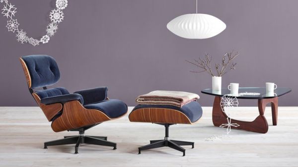 Velvet Eames Lounge Chair and Ottoman