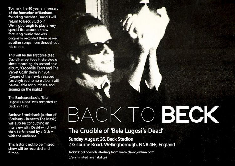 Para el Domingo 26 de Agosto es que David J realizará una parada en los afamados Beck Studios para ofrecer el Back to Beck (The Crucible of ‘Bela Lugosi’s Dead’), un show acústico en el que no sólo recorrerá su trayectoria con Bauhaus o la suya propia, sino que tendrá una sesión de preguntas y respuestas con la limitada y privilegias audiencia que se dé cita en el lugar, todo bajo la conducción de Andrew Brooksbank, autor de ‘Bauhaus – Beneath The Mask’, quien además de moderar, realizará una entrevista al músico.