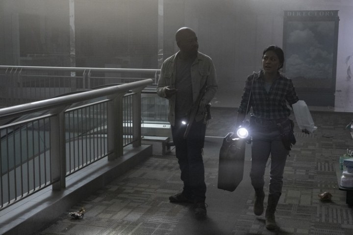Karen David as Grace, Lennie James as Morgan Jones – Fear the Walking Dead _ Season 5, Episode 10 – Photo Credit: Van Redin/AMC